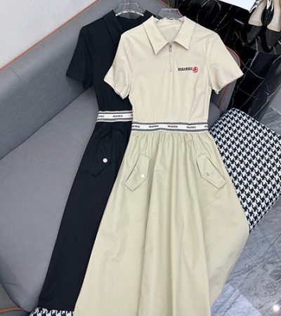 [홍콩명품,MIU MIU] 미우미우 25SS 로고 자수 여성 카라 반팔 원피스 (2컬러), BM20600, GBG, 홍콩명품의류,구매대행,온라인명품 > 여성몰