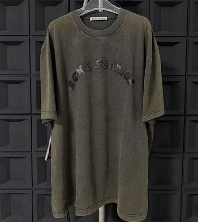 [홍콩명품.ACNE STUDIO] 아크네스튜디오 25SS 로고 레더 장식 반팔 티셔츠 (카키), BM20606, X2, 홍콩명품의류,구매대행,온라인명품 요약정보 및 구매