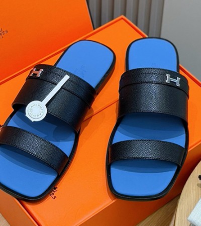 [홍콩명품.Hermes] 에르메스 25SS 로고 PARIS 샌들 슬리퍼 (블랙-블루), SE4847, S2, 명품스니커즈,운동화,구두,로퍼,하이탑,신발 > 신발