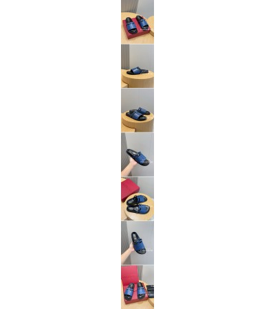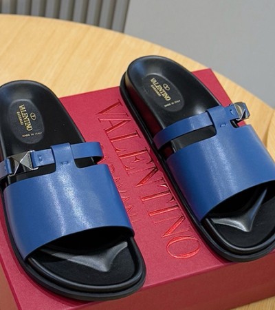 [홍콩명품.Valentino] 발렌티노 25SS 로고 레더 가죽 샌들 슬리퍼 (블루), SE4881, S2, 명품스니커즈,운동화,구두,로퍼,하이탑,신발 > 신발