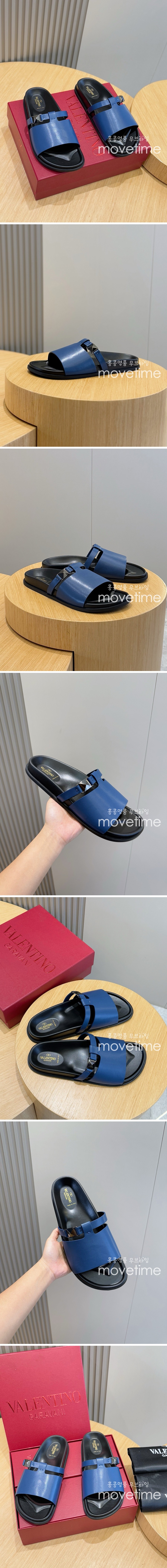 • [홍콩명품.Valentino] 발렌티노 25SS 로고 레더 가죽 샌들 슬리퍼 (블루), SE4881, S2, 명품스니커즈,운동화,구두,로퍼,하이탑,신발