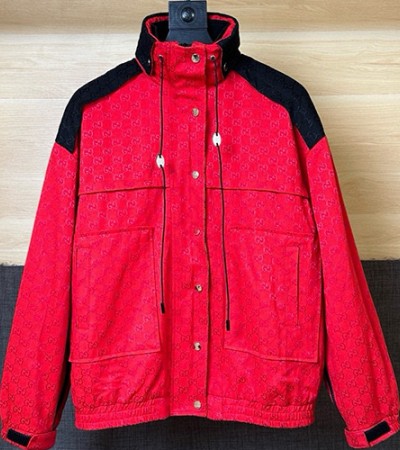 • [홍콩명품.Gucci] 구찌 25SS 로고 GG수프림 내피 후드 바람막이 자켓 (레드), BM20696, JU, 홍콩명품의류,구매대행,온라인명품