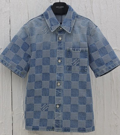 • [홍콩명품.LOUIS VUITTON] 루이비통 25SS 로고 다미에 데님 반팔 남방 셔츠, BM20730, KB, 홍콩명품의류,구매대행,온라인명품