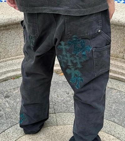 • [홍콩명품.Chrome Hearts] 크롬하츠 25SS 로고 데님 팬츠 진 청바지 (블랙), BM20817, JL, 홍콩명품의류,구매대행,온라인명품