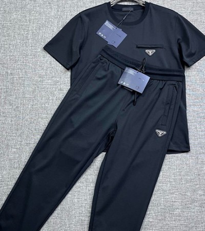 [홍콩명품,PRADA] 프라다 25SS 삼각로고 반팔 티셔츠 + 조거 팬츠 바지 상하의 세트 (블랙), BM20832, JQ, 홍콩명품의류,구매대행,온라인명품 > 남자의류