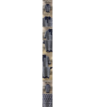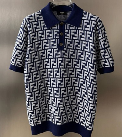 • [홍콩명품,FENDI] 펜디 25SS 로고 FF패턴 카라 폴로 니트 반팔 티셔츠 (네이비), BM20905, JU, 홍콩명품의류,구매대행,온라인명품