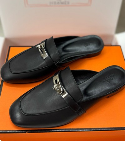 [홍콩명품.Hermes] 에르메스 25SS 로고 여성 레더 가죽 뮬 슬리퍼 (블랙-은장), SE4967, H3, 명품스니커즈,운동화,구두,로퍼,하이탑,신발 요약정보 및 구매