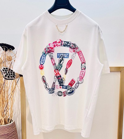 • [홍콩명품.LOUIS VUITTON] 루이비통 25SS 로고 그래픽 프린트 반팔 티셔츠 (화이트), BM20967, YS, 홍콩명품의류,구매대행,온라인명품