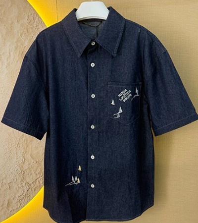 • [홍콩명품.LOUIS VUITTON] 루이비통 25SS 로고 그래픽 데님 반팔 남방 셔츠 (네이비), BM21024, JU, 홍콩명품의류,구매대행,온라인명품