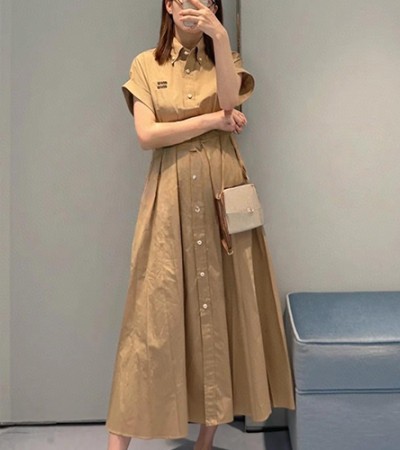 • [홍콩명품,MIU MIU] 미우미우 25SS 로고 자수 여성 셔츠 원피스 (브라운), BM21120, TBG, 홍콩명품의류,구매대행,온라인명품