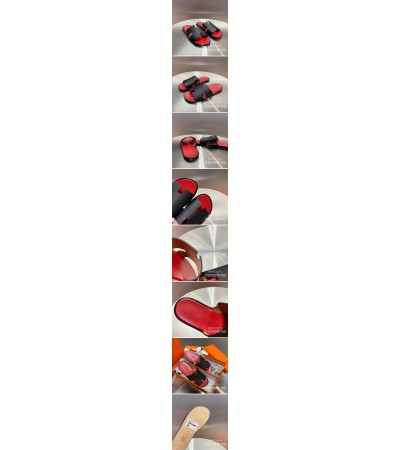 [홍콩명품.Hermes] 에르메스 25SS 로고 이즈미르 레더 가죽 슬리퍼 (블랙-레드), SE5225, GHS, 명품스니커즈,운동화,구두,로퍼,하이탑,신발 > 신발