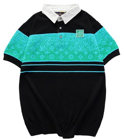 • [명품레플리카.LOUIS VUITTON] 루이비통 25SS 로고 모노그램 카라 2톤 반팔 티셔츠 (블랙-그린), BM21169, JU, 홍콩명품의류,구매대행,온라인명품