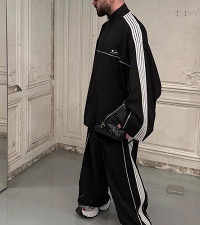• [명품레플리카.BALENCIAGA] 발렌시아가 25SS 로고 자수 바람막이 자켓 + 조거 팬츠 바지 상하의 세트 (블랙), BM21212, KB, 홍콩명품의류,구매대행,온라인명품