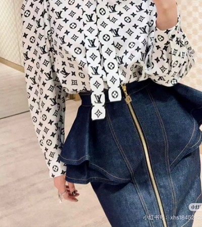• [홍콩명품.LOUIS VUITTON] 루이비통 25SS 로고 여성 데님 미디 스커트, BM21246, MR, 홍콩명품의류,구매대행,온라인명품