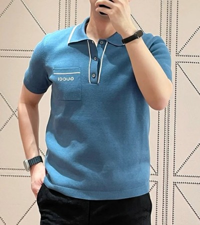 [홍콩명품.Gucci] 구찌 25SS 로고 카라 폴로 니트 반팔 티셔츠 (블루), BM21373, JU, 명품레플리카,미러급,온라인쇼핑몰사이트 > 남자의류