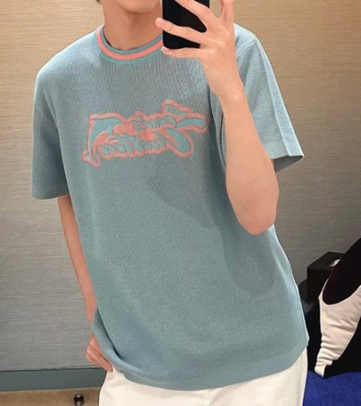 • [홍콩명품.LOUIS VUITTON] 루이비통 25SS 로고 그래픽 니트 반팔 티셔츠 (스카이블루), BM21444, JU, 명품레플리카,미러급,온라인쇼핑몰사이트