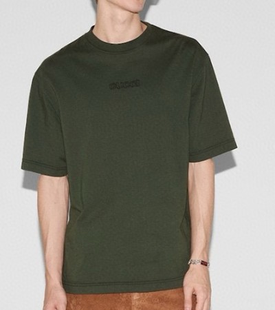 • [홍콩명품.Gucci] 구찌 25SS 로고 자수 반팔 티셔츠 (카키), BM21520, JL, 명품레플리카,미러급,온라인쇼핑몰사이트