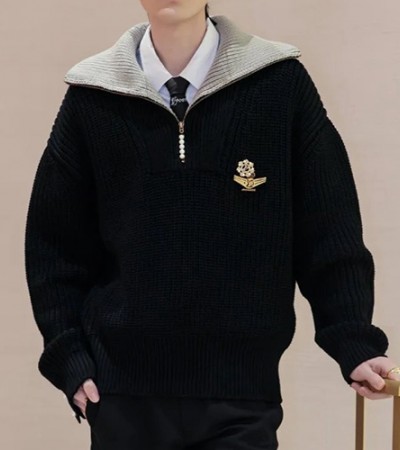 • [홍콩명품.LOUIS VUITTON] 루이비통 25SS 로고 뱃지 니트 스웨터 1AHC14 (블랙), BM21677, KK, 레플리카의류,미러급사이트