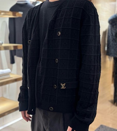 • [홍콩명품.LOUIS VUITTON] 루이비통 25SS 로고 뱃지 V넥 니트 가디건 1AHVNK (블랙), BM21681, KK, 레플리카의류,미러급사이트