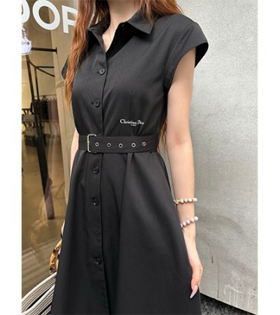 • [홍콩명품,Christian Dior] 디올 25SS 로고 여성 슬리브리스 카라 벨티드 원피스 (2컬러), BM21764, COCO, 레플리카의류,미러급사이트