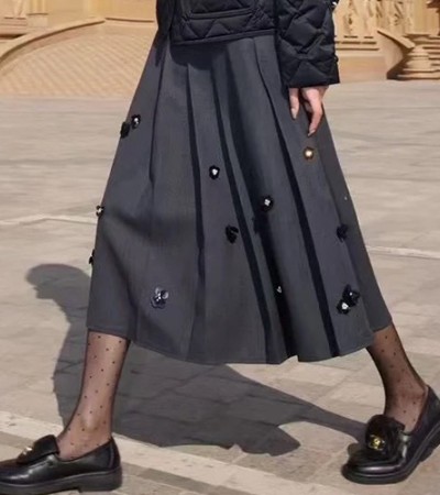 [홍콩명품,PRADA] 프라다 25SS 삼각로고 여성 미디 스커트 (다크그레이), BM21791, COCO, 레플리카의류,미러급사이트 > 여성몰