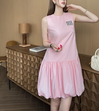 • [홍콩명품,MIU MIU] 미우미우 25SS 로고 여성 슬리브리스 탑 원피스 (2컬러), BM21819, COCO, 레플리카의류,미러급사이트