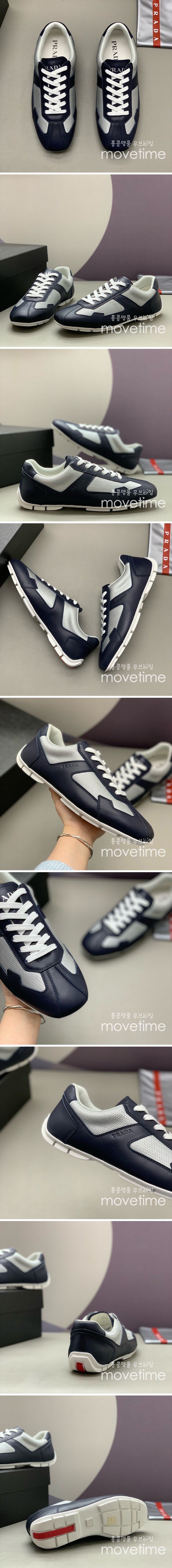 • [홍콩명품,PRADA] 프라다 25SS 삼각로고 레더 가죽 스니커즈 운동화 (네이비-화이트), SE5345, PMD, 명품스니커즈,운동화,구두,로퍼,하이탑,신발