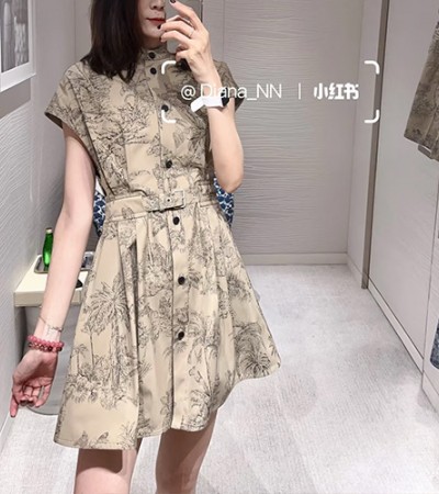 • [홍콩명품,Christian Dior] 디올 25SS 로고 여성 정글 패턴 슬리브리스 원피스 (카라멜), BM21972, MC, 레플리카의류,미러급사이트