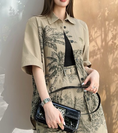 • [홍콩명품,Christian Dior] 디올 25SS 로고 여성 정글 패턴 반팔 남방 셔츠 (카라멜), BM21973, MC, 레플리카의류,미러급사이트
