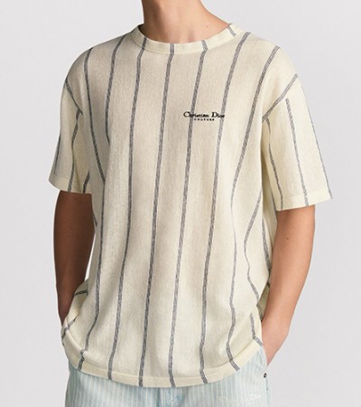 • [홍콩명품,Christian Dior] 디올 25SS 로고 스트라이프 반팔 티셔츠 (아이보리), BM22033, KK, 레플리카의류,미러급사이트