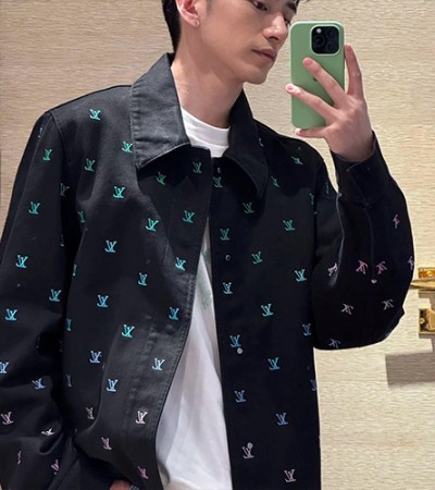 • [홍콩명품.LOUIS VUITTON] 루이비통 25SS 로고 자수 카라 데님 자켓 (블랙), BM22115, JU, 레플리카의류,미러급사이트