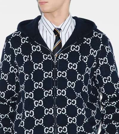 • [홍콩명품.Gucci] 구찌 25SS 로고 패턴 울 캐시미어 후드 집업 자켓 (그레이), BM22028, KK, 레플리카의류,미러급사이트