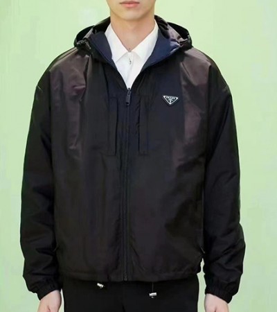 • [홍콩명품,PRADA] 프라다 25SS 삼각로고 리버서블 후드 바람막이 자켓 (블랙-네이비), BM22134, JL, 레플리카의류,미러급사이트