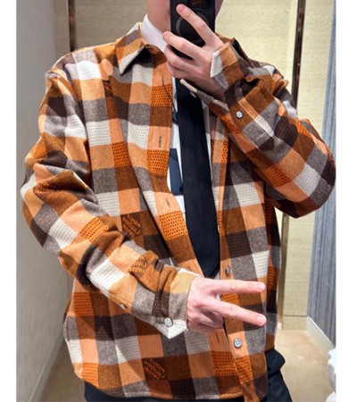 [홍콩명품.LOUIS VUITTON] 루이비통 25SS 로고 다미에 울 남방 셔츠 (오렌지), BM22261, S1F, 레플리카의류,미러급사이트 > 남자의류