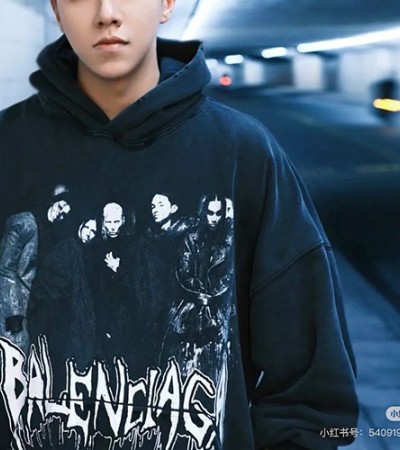 • [홍콩명품.BALENCIAGA] 발렌시아가 25SS 로고 그래픽 프린트 후드 티셔츠 (블랙), BM22352, KK, 레플리카의류,미러급사이트