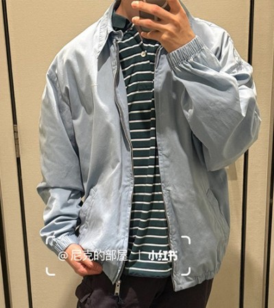 [홍콩명품,PRADA] 프라다 25SS 로고 자수 카라 봄버 자켓 (스카이블루), BM22385, RO, 레플리카의류,미러급사이트 > 남자의류
