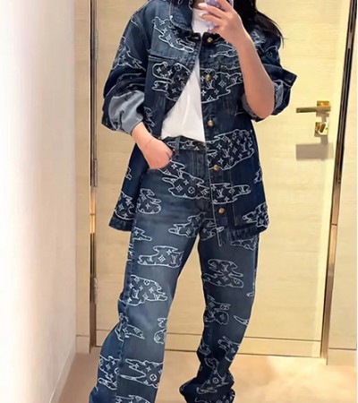 • [홍콩명품.LOUIS VUITTON] 루이비통 25SS 로고 모노그램 데님 카라 자켓 + 데님 팬츠 진 청바지 상하의 세트, BM22409, KB, 레플리카의류,미러급사이트