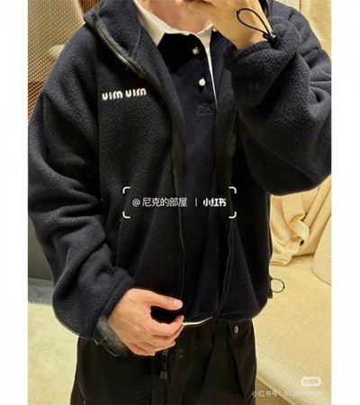 [홍콩명품,MIU MIU] 미우미우 25SS 로고 자수 플리스 후드 자켓 (네이비), BM22412, KB, 레플리카의류,미러급사이트 > 남자의류