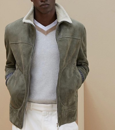[홍콩명품.Brunello Cucinelli ] 브루넬로 쿠치넬리 25SS 로고 레더 가죽 시어링 봄버 자켓 (카키), BM22591, TOM, 레플리카의류,미러급사이트 > 남자의류