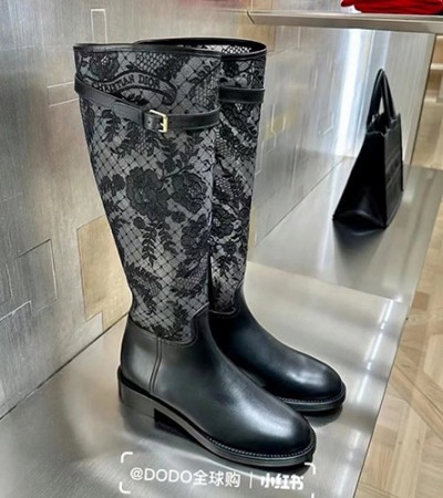 • [홍콩명품,Christian Dior] 디올 25SS 로고 여성 레더 가죽 레이스 장식 롱 구두 부츠 (블랙), SE5579, GHS, 명품스니커즈,운동화,구두,로퍼,하이탑,신발