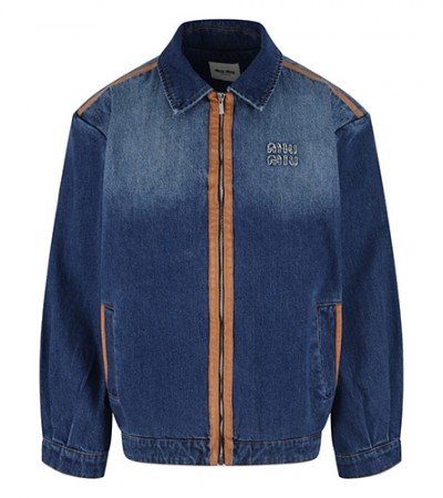• [홍콩명품,MIU MIU] 미우미우 25SS 로고 여성 데님 카라 봄버 자켓, BM22736, JL, 레플리카의류,미러급사이트