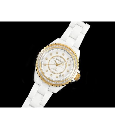 • [홍콩명품.CHANEL] 샤넬 J13 38mm 옐로우골드 다이아몬드 베젤 화이트 세라믹 화이트 다이얼