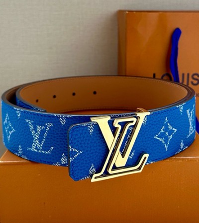 • [홍콩명품.LOUIS VUITTON] 루이비통 25SS 로고 모노그램 Initiales 레더 가죽 리버서블 벨트 (블루), 4.0cm, BT1451, 명품레플리카,인터넷쇼핑몰,남자명품,해외직구