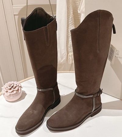 • [홍콩명품.Brunello Cucinelli ] 브루넬로 쿠치넬리 25SS 로고 여성 레더 가죽 구두 부츠 (브라운), SE5727, GHS, 명품스니커즈,운동화,구두,로퍼,하이탑,신발