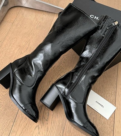 • [홍콩명품.CHANEL] 샤넬 25SS 로고 여성 레더 가죽 굽 구두 부츠 (블랙), SE5737, GHS, 명품스니커즈,운동화,구두,로퍼,하이탑,신발