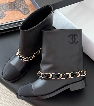 • [홍콩명품.CHANEL] 샤넬 25SS 로고 여성 레더 가죽 3cm 굽 구두 부츠 (블랙), SE5750, GHS, 명품스니커즈,운동화,구두,로퍼,하이탑,신발