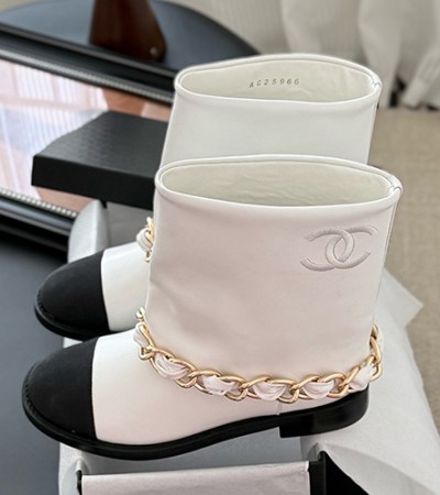 • [홍콩명품.CHANEL] 샤넬 25SS 로고 여성 레더 가죽 3cm 굽 구두 부츠 (화이트), SE5752, GHS, 명품스니커즈,운동화,구두,로퍼,하이탑,신발