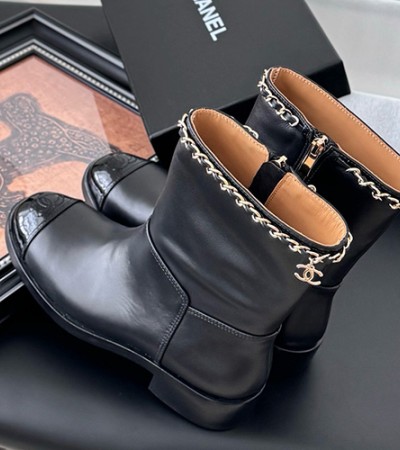 • [홍콩명품.CHANEL] 샤넬 25SS 로고 여성 레더 가죽 구두 부츠 (블랙), SE5756, GHS, 명품스니커즈,운동화,구두,로퍼,하이탑,신발