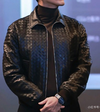 • [홍콩명품.BOTTEGA VENETA] 보테가베네타 25SS 로고 인트레치아토 레더 가죽 카라 봄버 자켓 (블랙), BM22820, TOM, 레플리카의류,미러급사이트