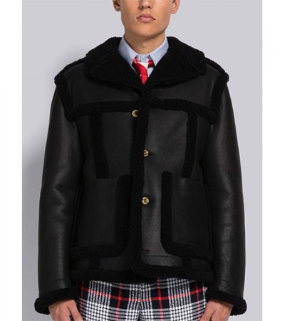 • [홍콩명품.THOME BROWNE] 톰브라운 25SS 로고 레더 가죽 시어링 자켓 (2컬러), BM22824, TOM, 레플리카의류,미러급사이트